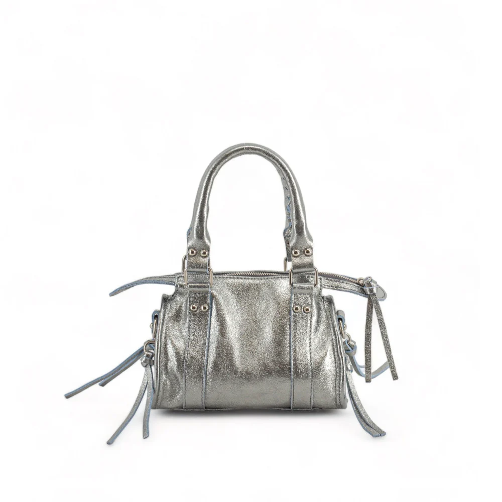 Mini-sac bowling en cuir irisé SANDSTORM NANO Argent moyen