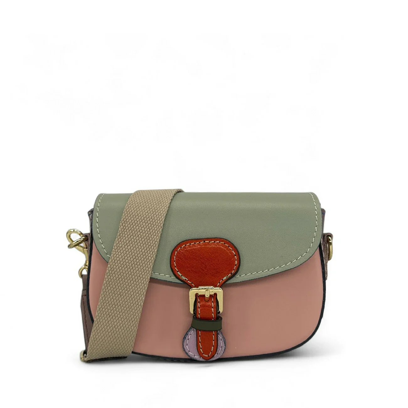 Mini sac en cuir lisse color-block, porté main ou bandoulière, fabriqué en Italie.