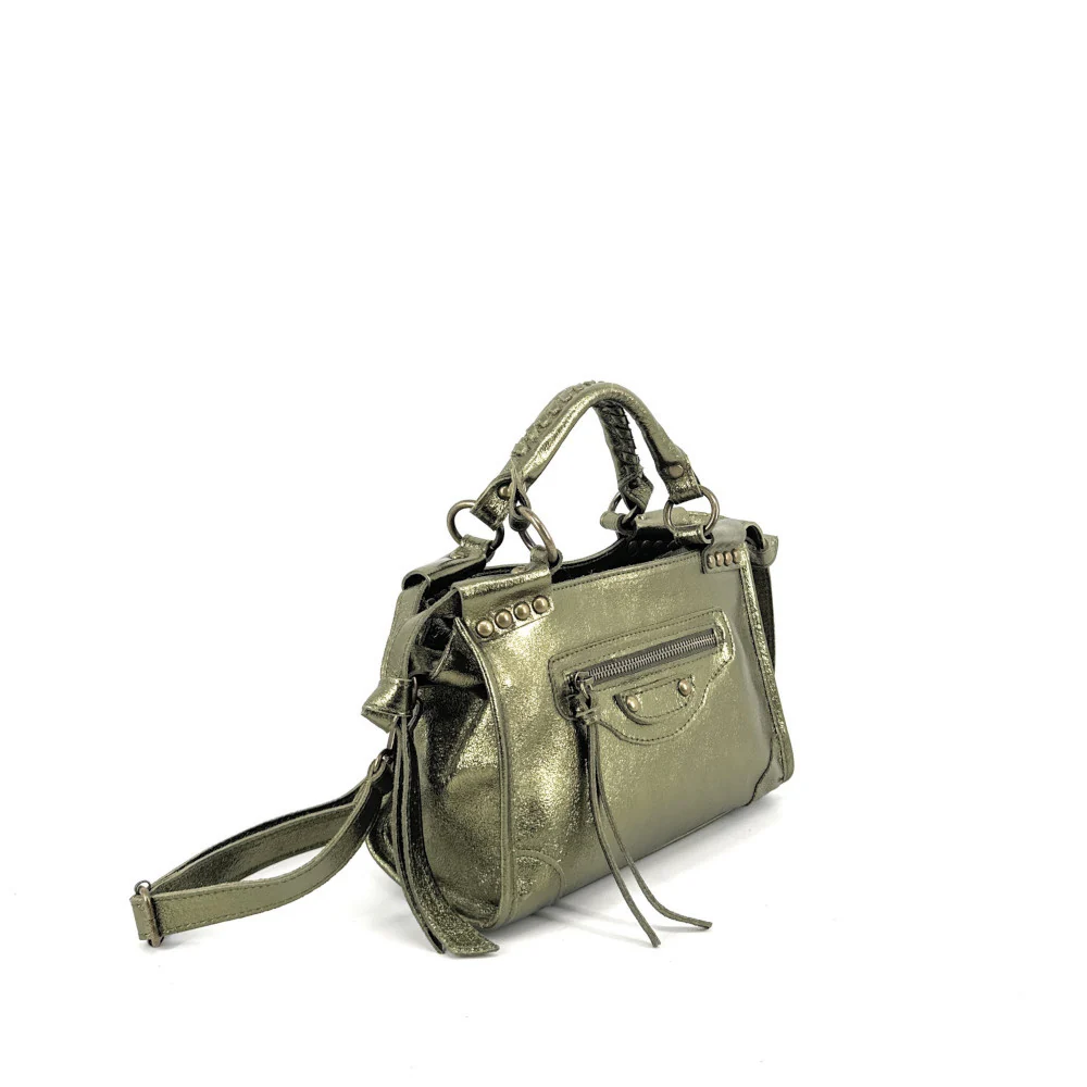 Mini sac à main en cuir brossé gratté ou métallisé, porté main ou bandoulière, fabriqué en Italie.