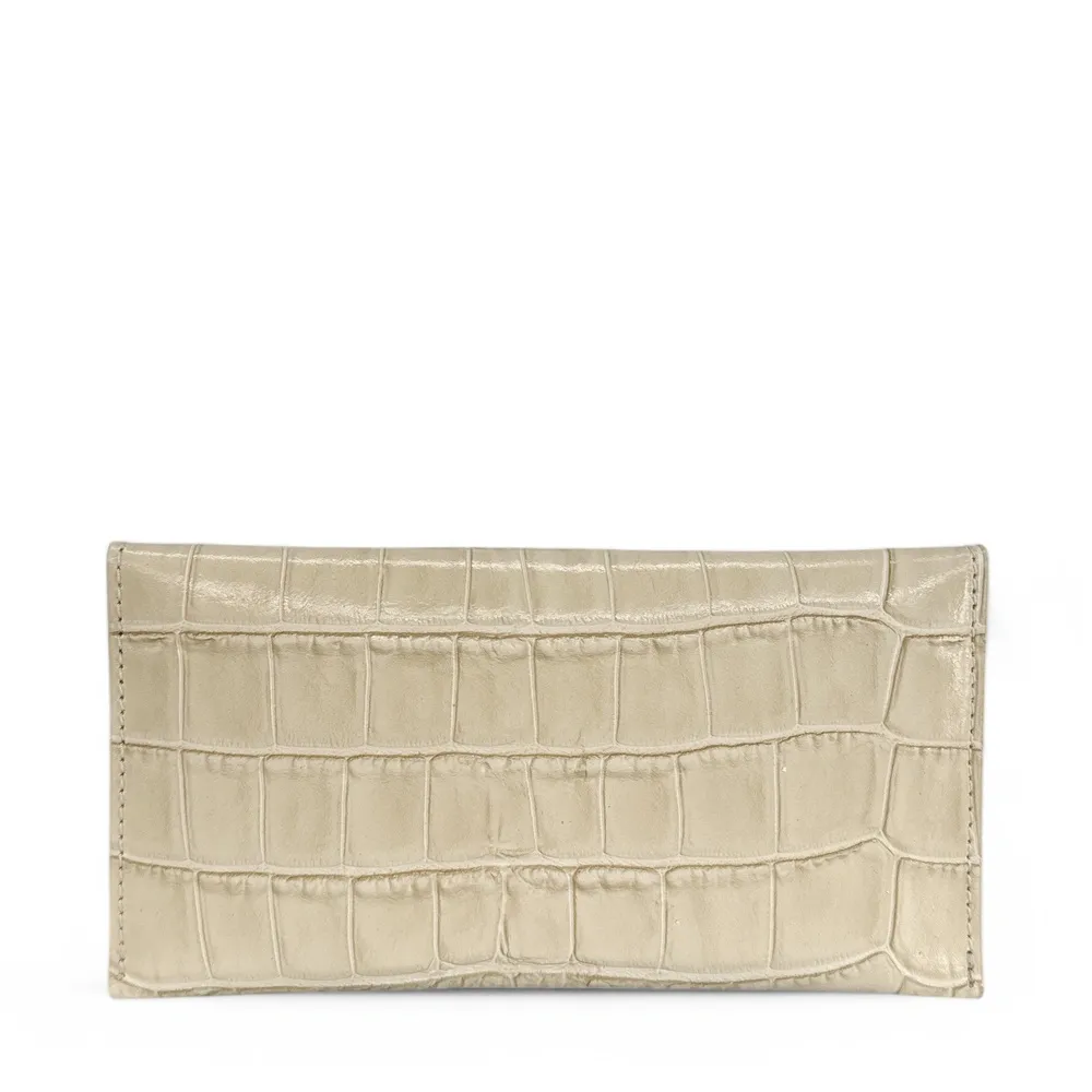 Porte-cartes portefeuille en cuir façon crocodile CLOE CROCO Beige crème