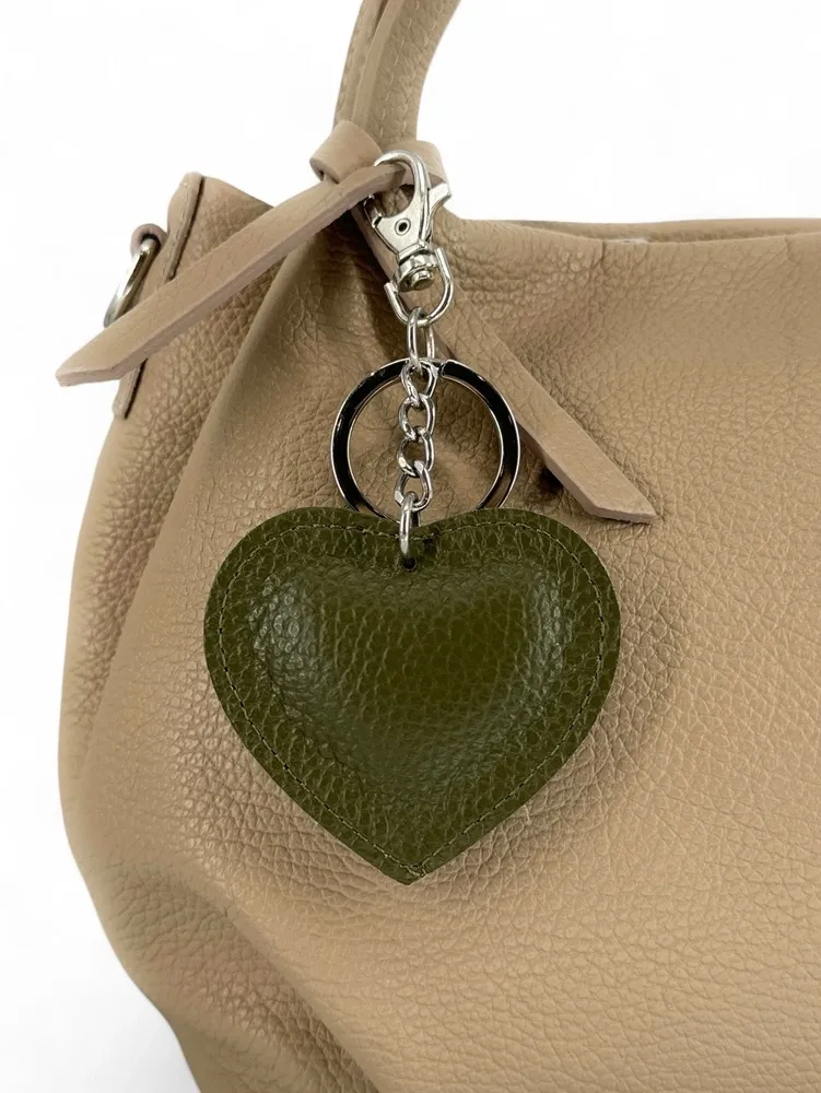Porte-clés en cuir grainé COEUR SILVER Kaki
