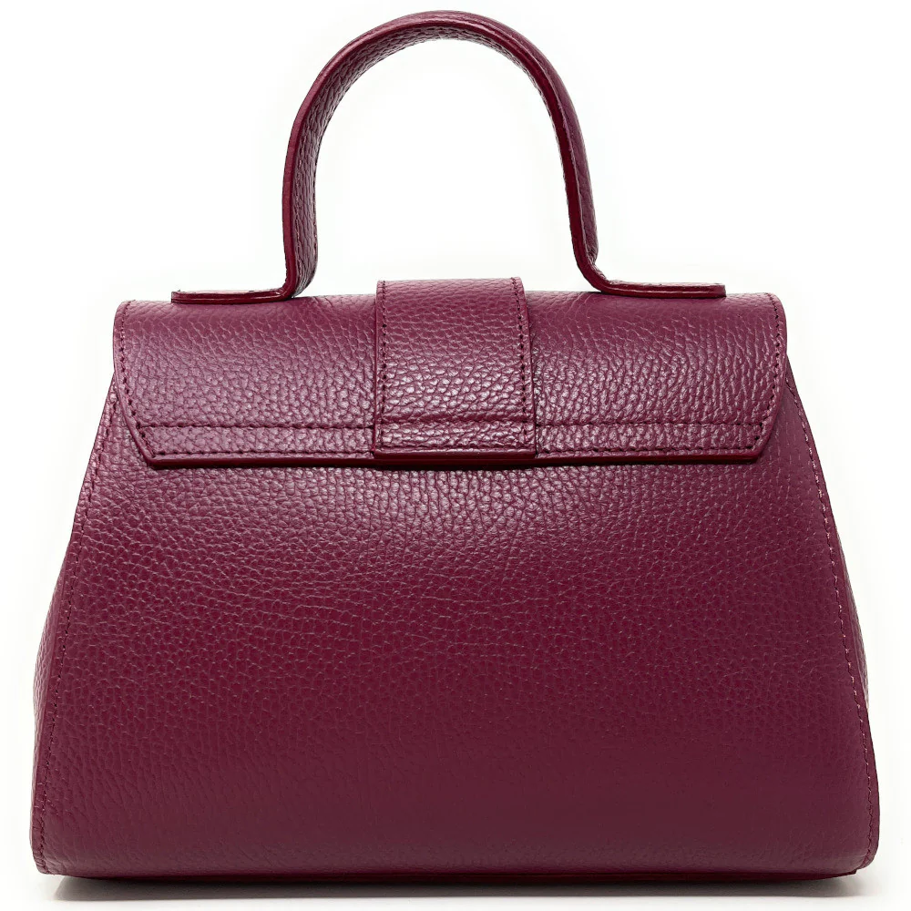 Sac bandoulière en cuir grainĂ© prune, portĂ© main, bandoulière ou crossbody, fabriquĂ© en Italie.Â