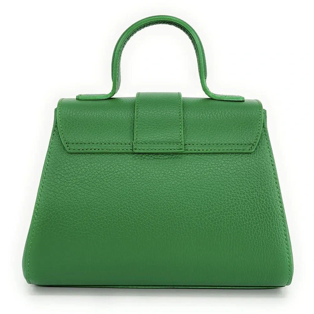 Sac bandoulière en cuir grainĂ© vert anglais, portĂ© main, bandoulière ou crossbody, fabriquĂ© en Italie.Â
