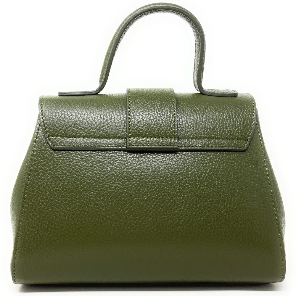 Sac bandoulière en cuir grainĂ© vert olive, portĂ© main, bandoulière ou crossbody, fabriquĂ© en Italie.Â
