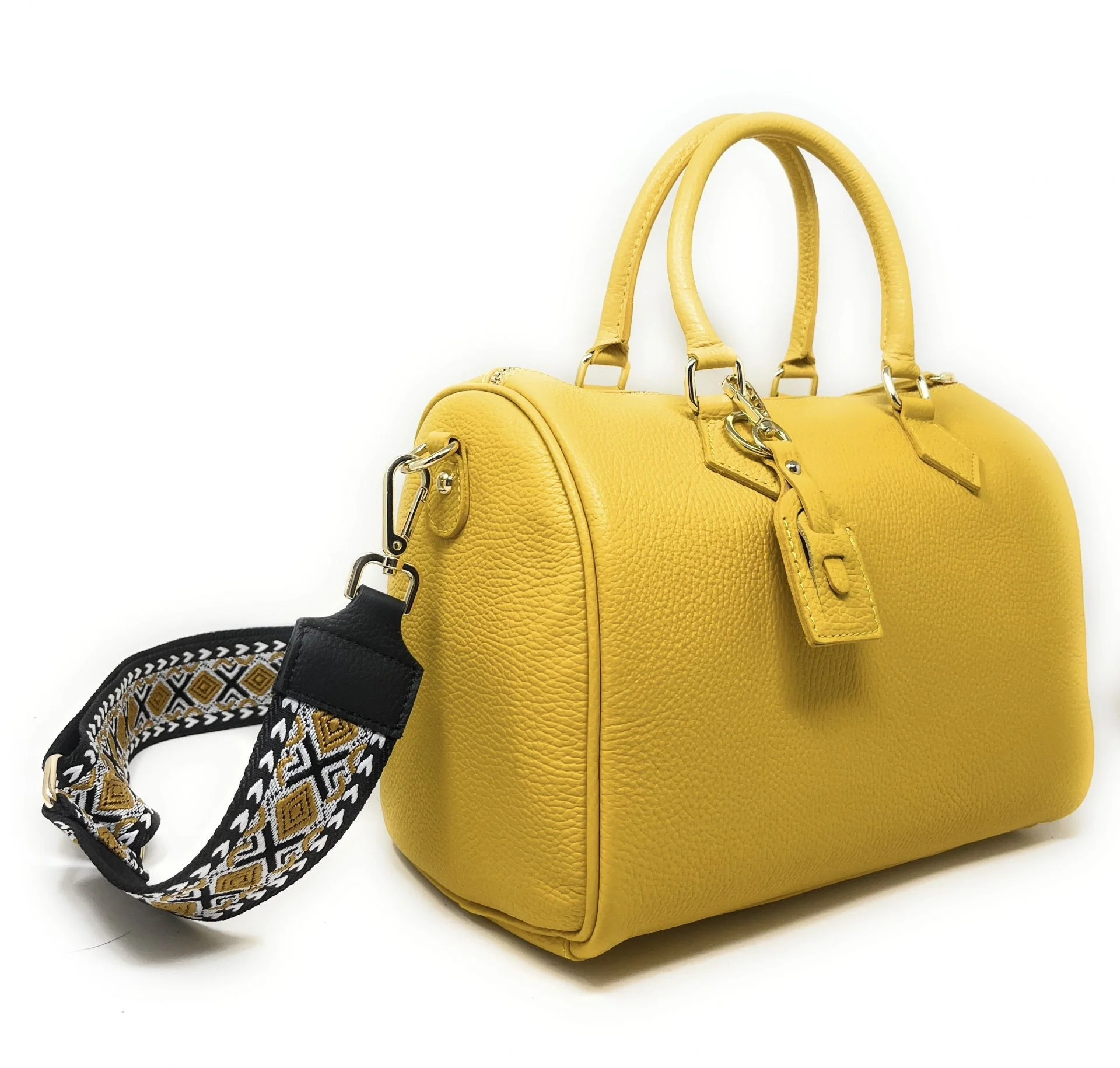 Sac à main bowling en cuir grainé italien BOOLIN Jaune tournesol