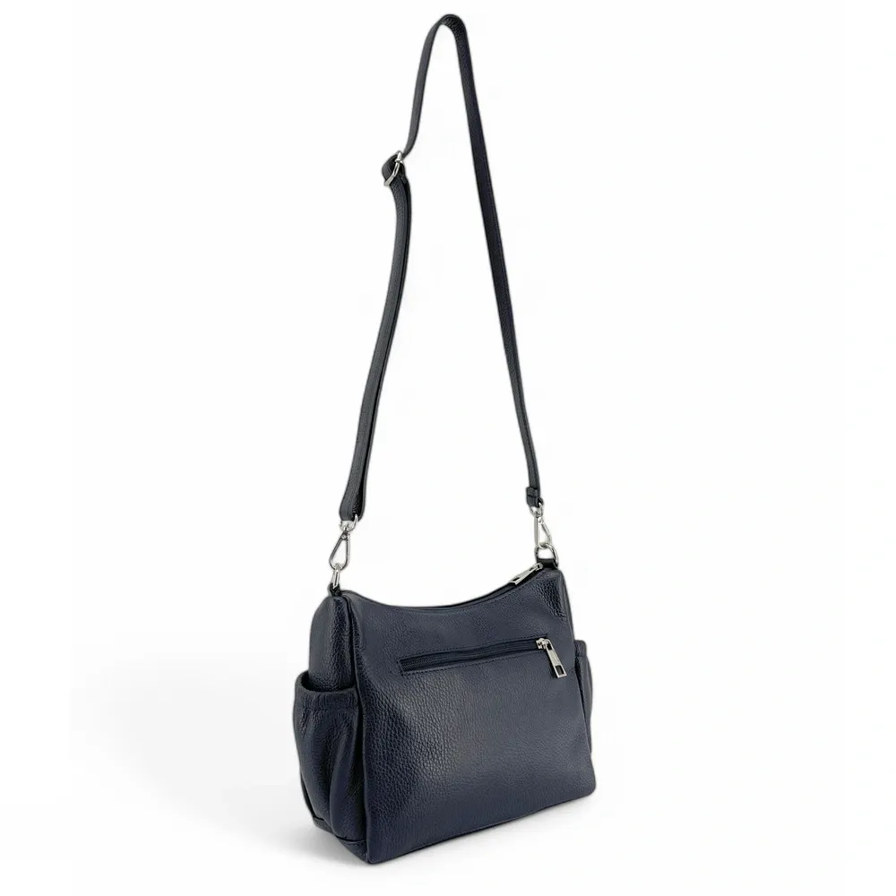 Sac à main en cuir grainé BROOKLYN Bleu marine