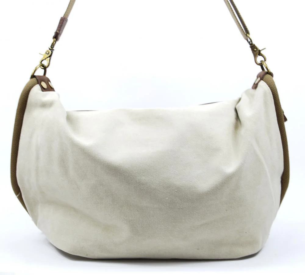 Sac à main week-end cuir et toile BARBADE Beige crème—