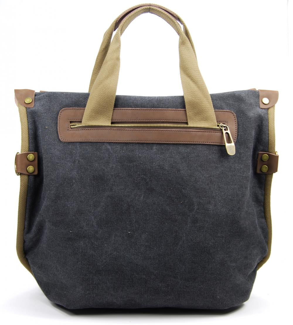 Sac à main week-end en cuir et toile, porté main ou bandoulière.