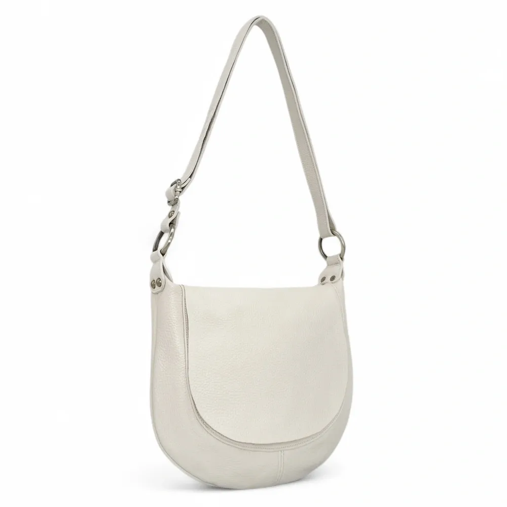 Sac bandoulière en cuir grainé, porté bandoulière et crossbody, fabriqué en Italie.