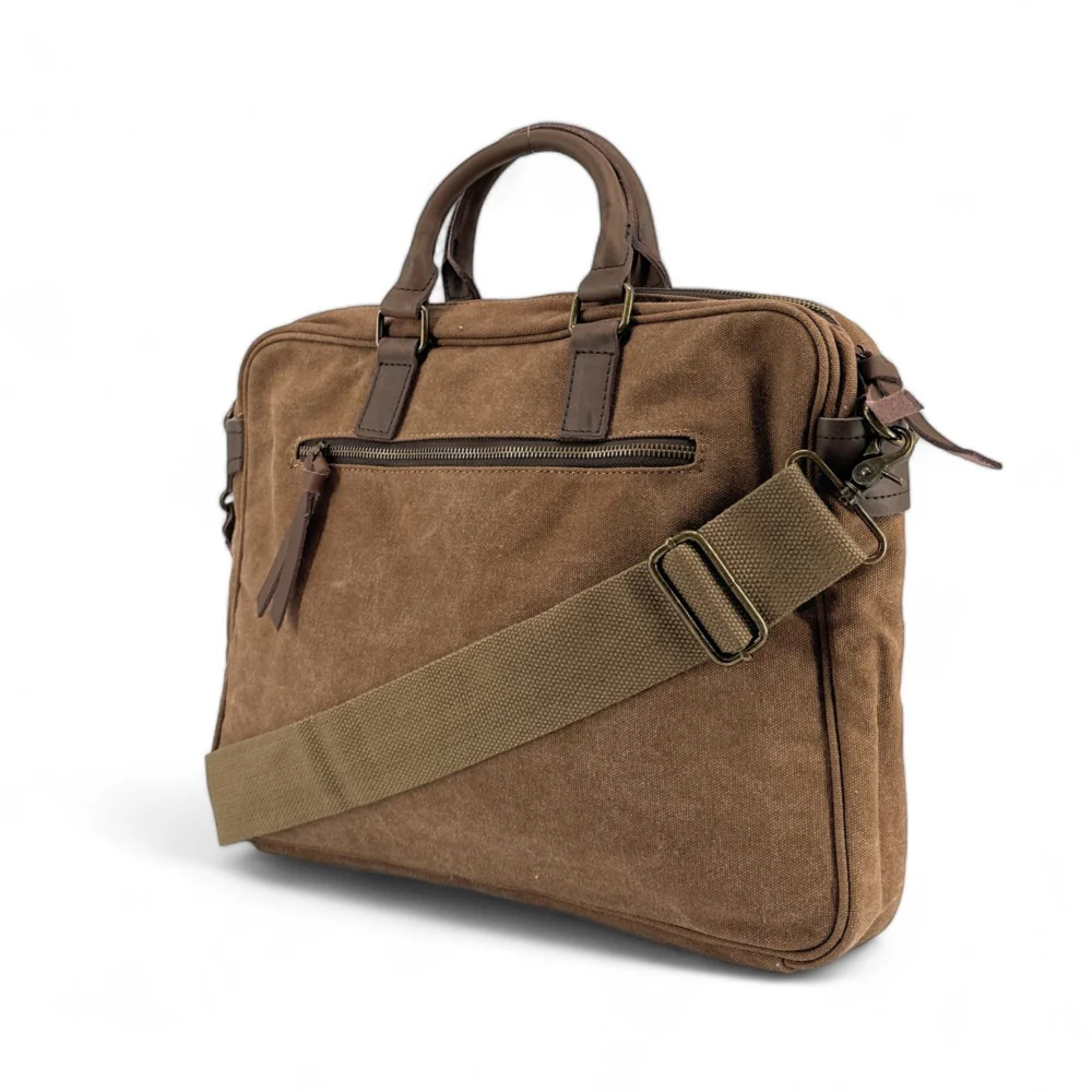Sacoche en cuir et toile LOMBOK Camel foncé