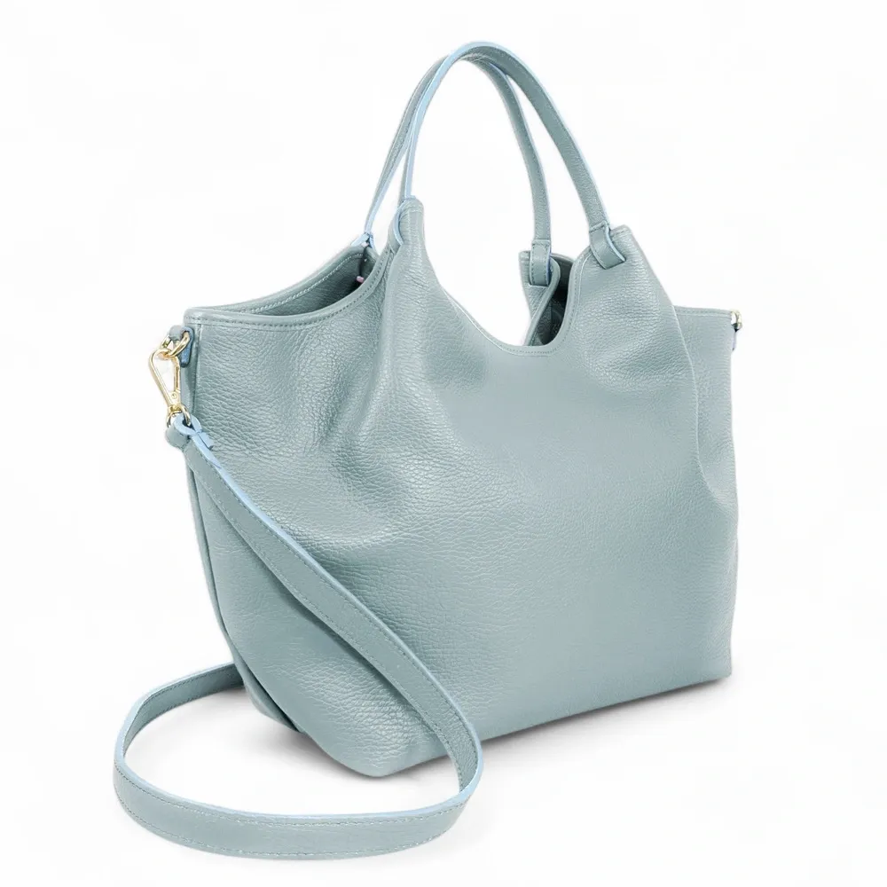 Sac cabas en cuir grainé ALYSSA Bleu pastel
