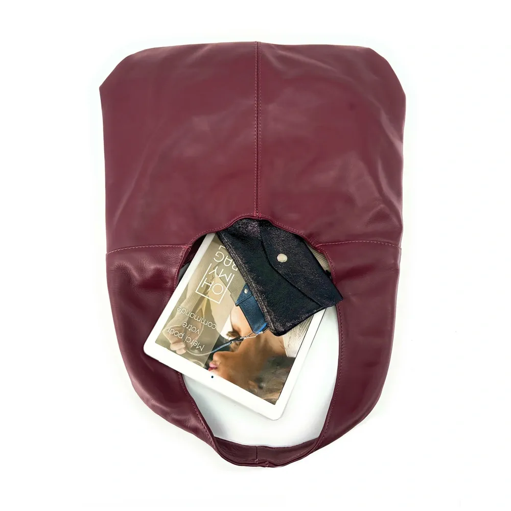Sac HOBO en cuir lisse NEW AGE Rouge bordeaux