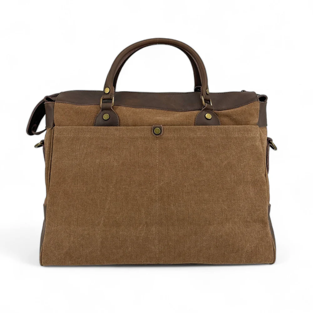 Conception pratique et beau volume pour ce sac week-end multipoches à la toile robuste. Son design de style grand cartable séduira les amoureux du vintage.